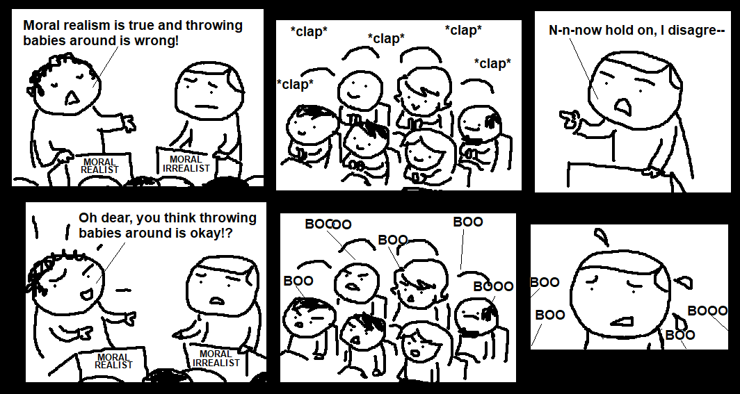 As I have put here, it is preposterous. For sure, the readers of this post have countless times followed social conventions when playing board games, sporting matches and everyday interactions, without assuming that absolute truths reside behind the rules they followed. Similarly, moral rules must be followed for society to work. Because there is no enforcer outside society, moral rules need to be self-enforcing to be sustainable: moral systems must come with a range of formal and informal sanctions that ensure that nobody has an interest in stepping outside the rules of appropriate behaviour. Our moral intuitions are then a reflection of the fact that our cognition is well designed for us to navigate these situations, anticipate what is appropriate, be wary of what might not be, and so on.