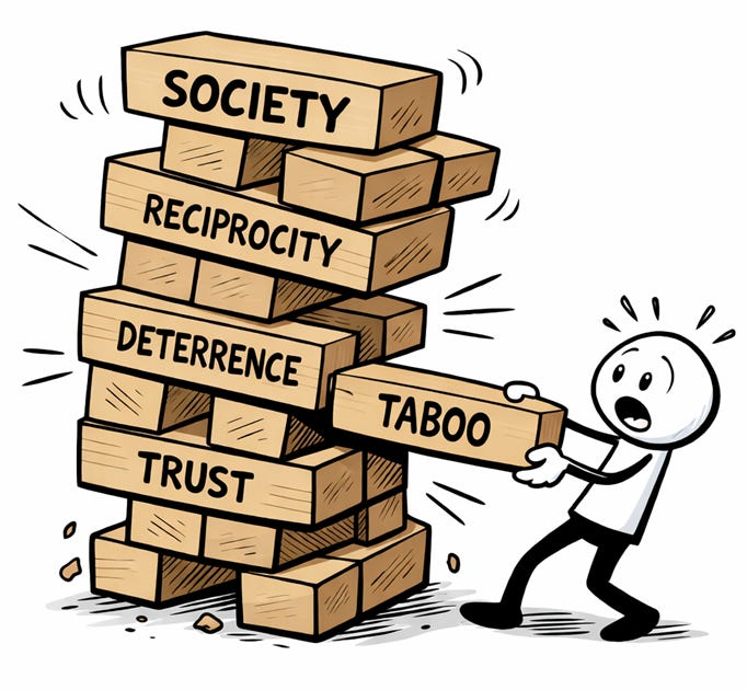 The idea that moral and fairness norms are equilibria of social games has a key implication. If they remain stable and respected, it is not because people are brainwashed and mindlessly obey imposed rules. Instead, social norms are stable because they are self-enforcing: everybody has an interest in following them when everybody else follows them.