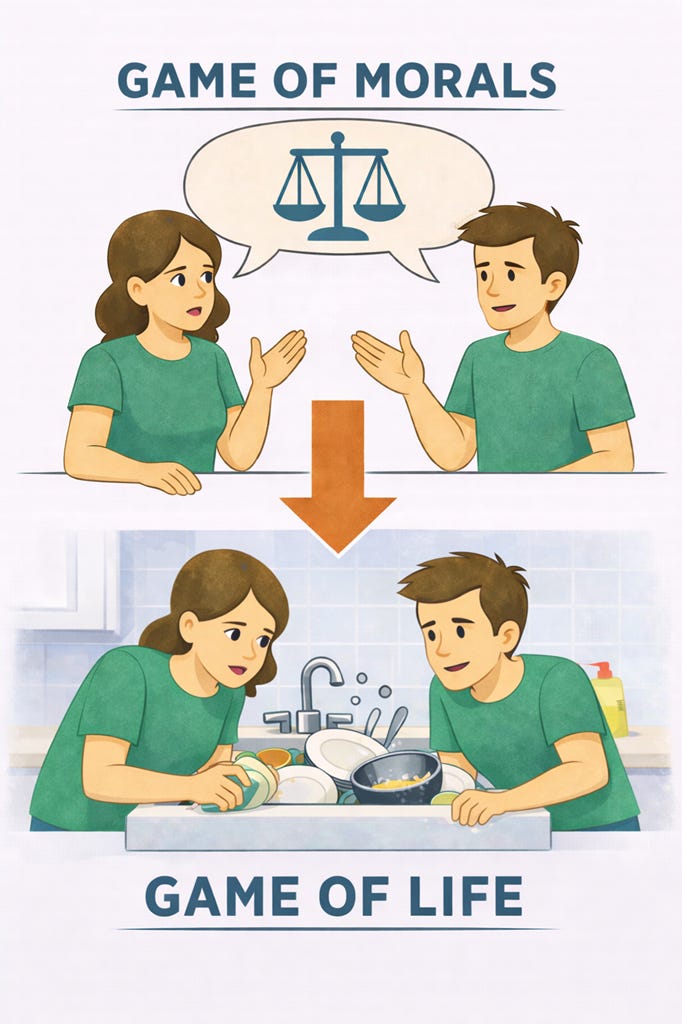 Agreements in the Game of Morals need to be self-enforcing in the Game of Life