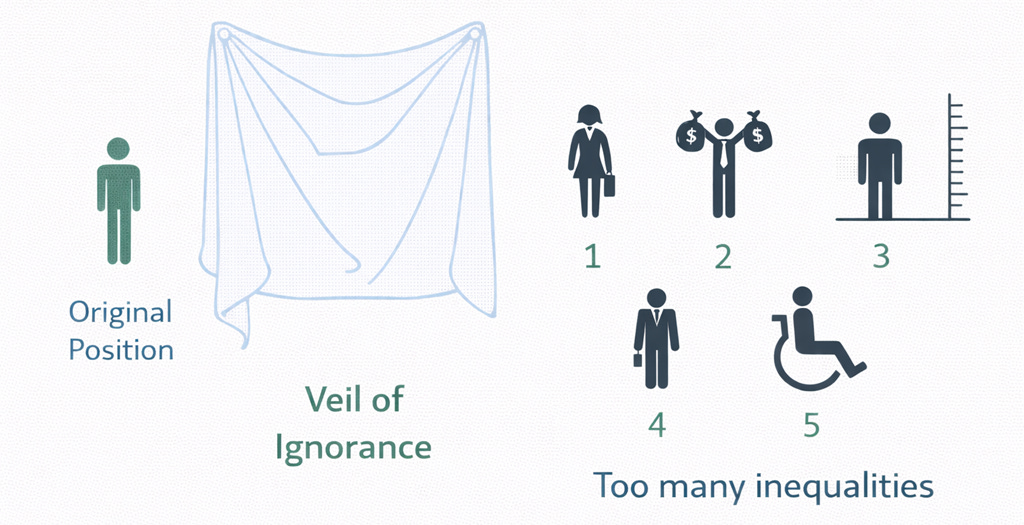 Rawls argues that under the veil of ignorance we would choose to organise the social situation so as to focus on the benefits of the most disadvantaged person. With this conclusion, Rawls supports egalitarianism.2