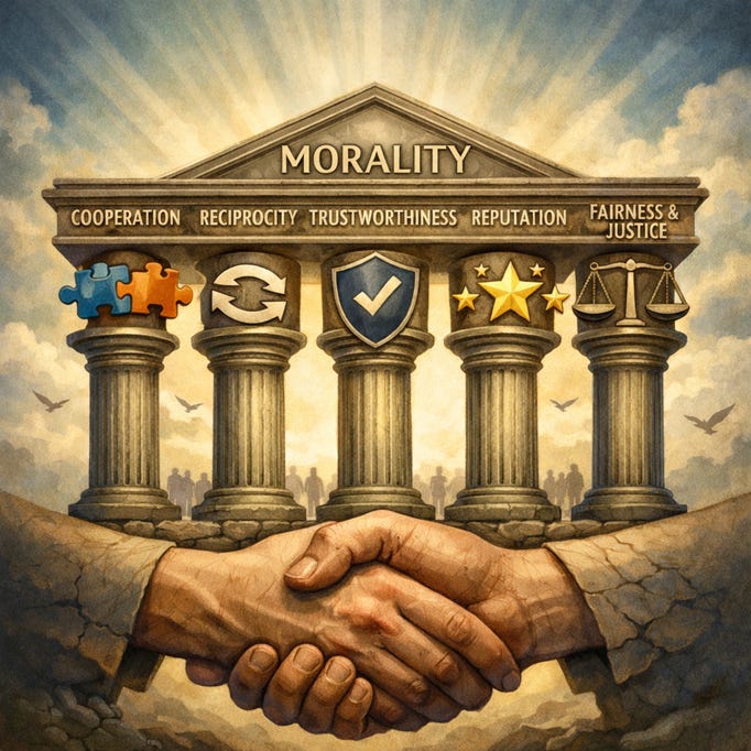 The contractarian approach sidesteps this metaphysical difficulty and the use of skyhooks to found morality. Instead, it posits that morality arises from something grounded in reality: a social agreement about how to organise social interactions.
