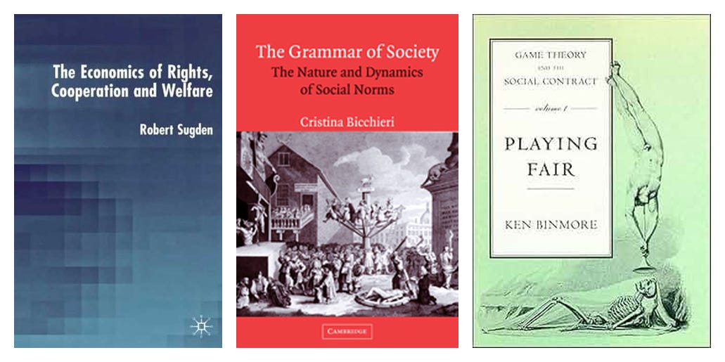 Binmore, K.G. (1994) Game Theory and the Social Contract. Vol. 1, Playing Fair. Cambridge, MA: MIT Press.