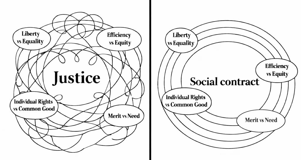 As you read, you quickly meet a familiar list of dilemmas without clear answers. Should society protect liberty or ensure equality? Should institutions prioritise economic efficiency or fairness through redistribution? Should society focus on improving the situation of the worst-off, or on rewarding those whose effort and talent contribute most to innovation and wealth creation?